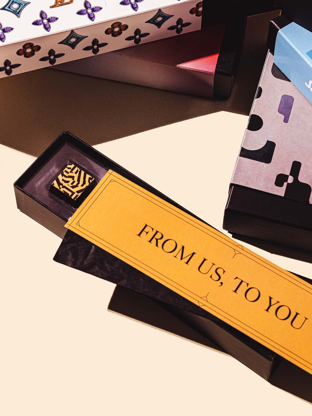 From our Los Angeles chocolate kitchen to your door, we handle every step. Our fresh gourmet chocolates are made in-house and shipped directly to you or your clients or third parties. Explore custom branded packaging, complimentary gift enclosure cards, and more. Elevate your chocolate gifting experience with Compartés.