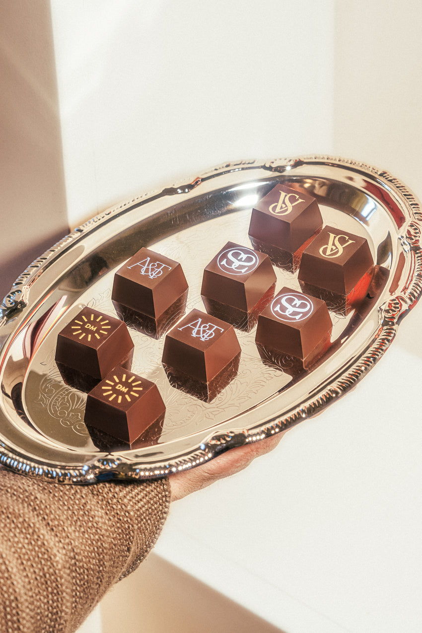 Adding your logos, monograms and designs to Compartés chocolates is as easy as...